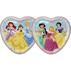 These shaped Disney Princess Fairy-Tale Friends Dinner Plates come in 2 designs that feature the different Disney Princesses. It includes 8 heart-shaped dinner plates. Dimensions: 9" Diameter