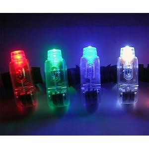 These finger lights can be used for many occasions to have lots of fun with. They are very popular at raves, birthday parties, and many other events that people attend. The finger lights are bright and have a long life and the batteries are replacable. They have an easy push button to turn on and off. You will receive 40 super bright finger lights. Each package will contain 4 finger lights each with a total of 10 packages you will receive. Each package comes with 4 different colored finger lights, no need to worry about receiving all white led finger lights that are disguised as colored finger lights by the colored exterior. You will receive a total of 10 white finger lights, 10 blue finger lights, 10 red finger lights, and 10 green finger lights. Elastic bands make these finger lights easy to attach to your fingers, these finger lights do not not velcro bands that tend to stick and get in the way sometimes.