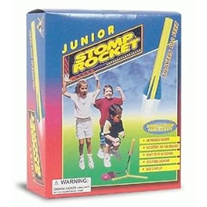 Kids can get rid of some excess energy with this air-powered outdoor rocket toy. No battery or fuel is needed to get the rockets airborne--just some old-fashioned stomping power. Set up the simple launch stand in a clear outdoor area, connect the 38-inch-long vinyl air hose and blast pad, load one of the 9-inch yellow foam rockets--and watch out. Our 5-year-old assistant reviewer really got a kick out of jumping on the purple blast-off pad and watching her rockets soar 50 feet or more, though she had to fight the adults for a turn. If the three rockets included with the kit aren't enough fun, you can order stomp parachutes and spin copters from the manufacturer. --Marianne Painter